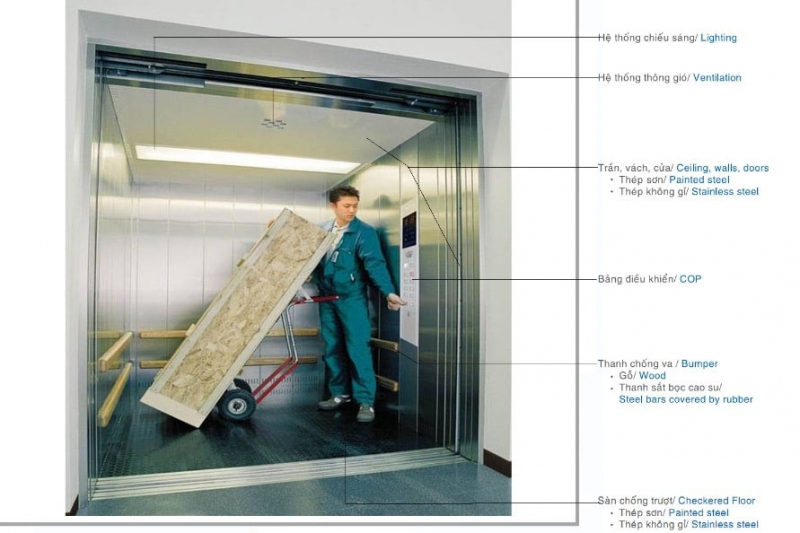 Thang tải hàng kèm người